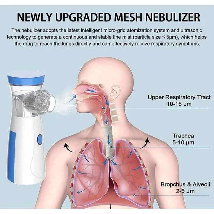 This advanced nebulizer uses mesh technology to convert liquid medication into a fine mist, ensuring better absorption and efficient delivery to the lungs.